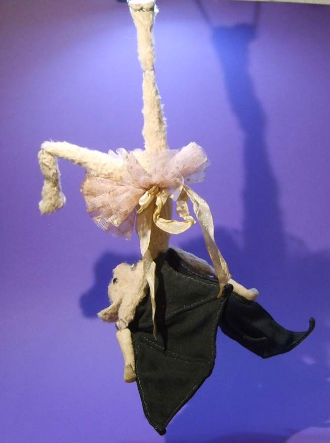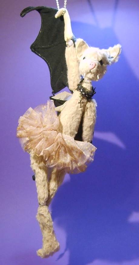 Fledermaus Luweena 30cm Flügel aus Kunstleder mit Drahteinlagen, rosa Spitzenrock, schwarzes