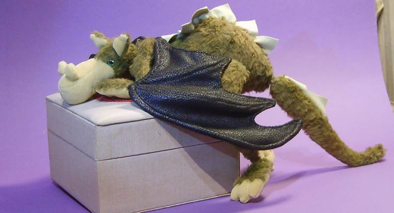 Drache Fu Long 31cm von Nase bis Schwanz, aus Casmere, 14 Kugel Gelenke grüne Lauschaer