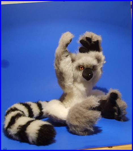 Eneko eine Lemure 18cm, Schwanz 35cm Alpaka, Draht in Armen und Beinen sowie